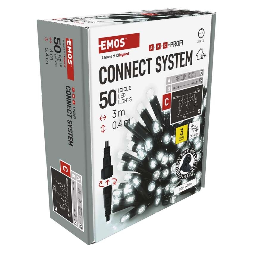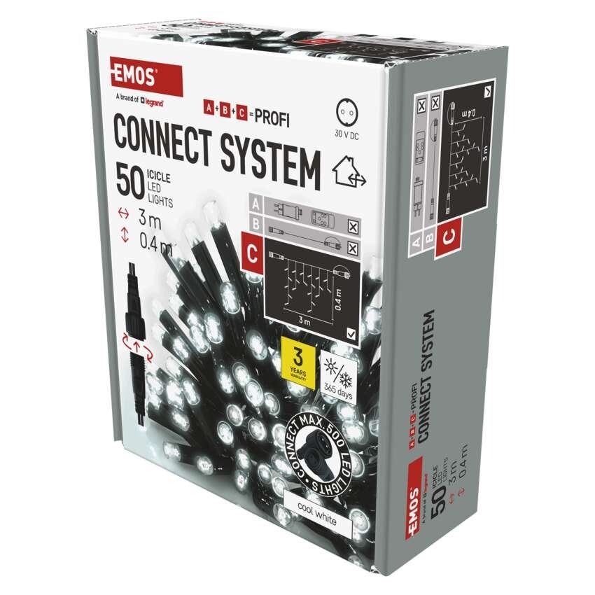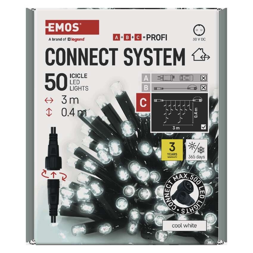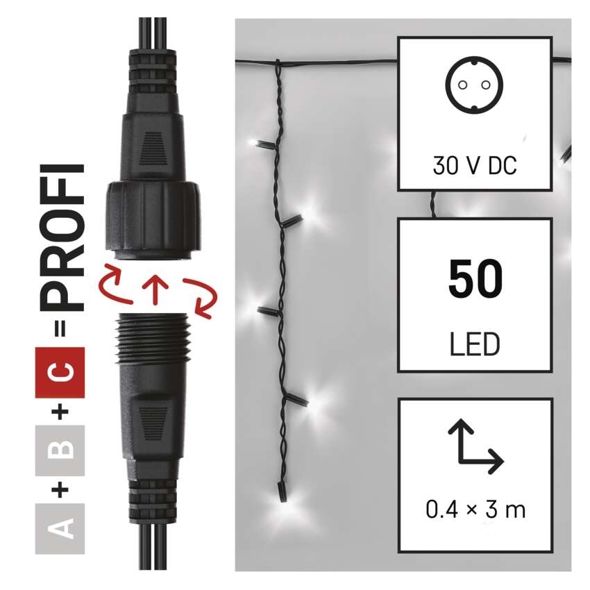 Profi LED vánoční spojovací řetěz černý EMOS D2CC01 50LED 3m krápníky studená bílá