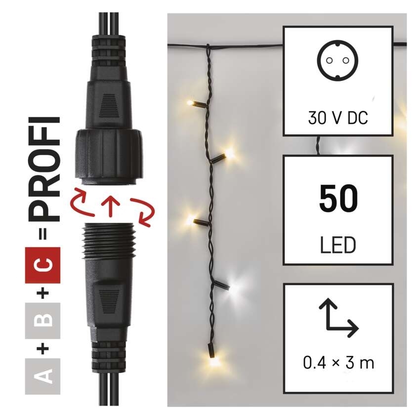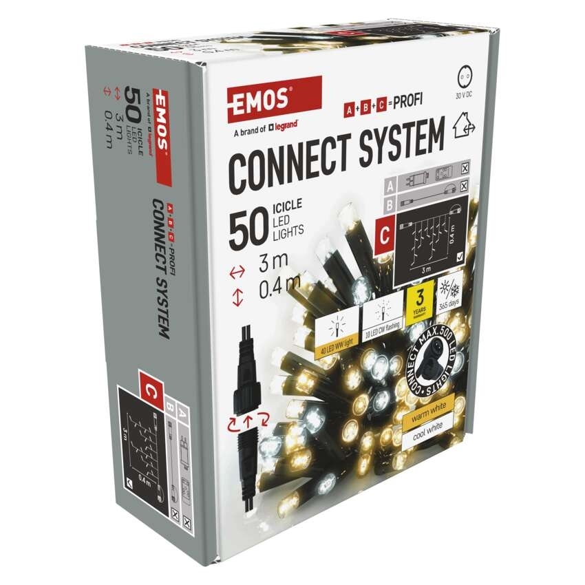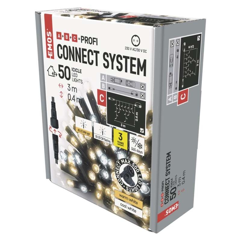 Profi LED vánoční spojovací řetěz problikávající EMOS D2CN01 50LED 3m krápníky teplá/studená bílá