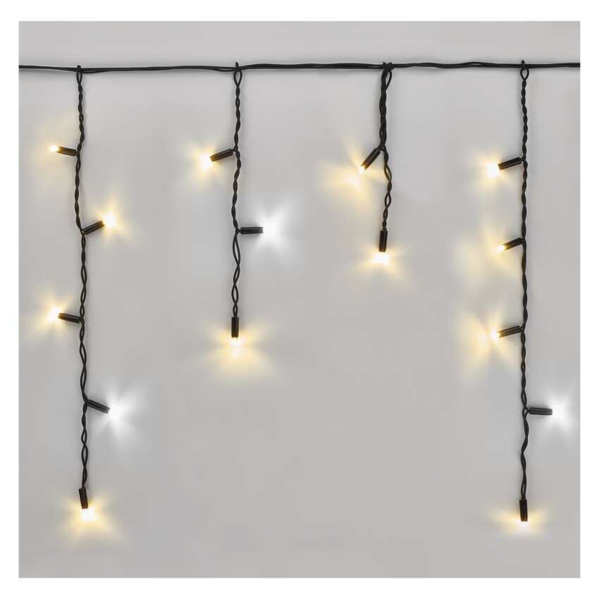 Spojovací LED řetěz s efektem problikávajících rampouchů v teplé a studené bílé barvě, vhodný pro venkovní použití. Délka 3 metry.