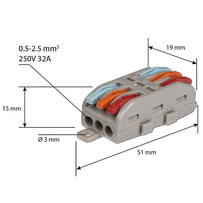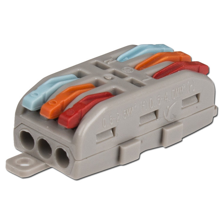 Kabelová svorka s páčkou, 3-3, červená, oranžová, modrá.