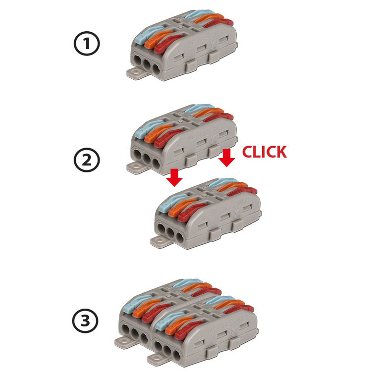 MCLED KONEKTOR PROPOJOVACÍ S PÁČKOU 3-3 ČERVENÁ, ORANŽOVÁ, MODRÁ, ML-112.218.72.0