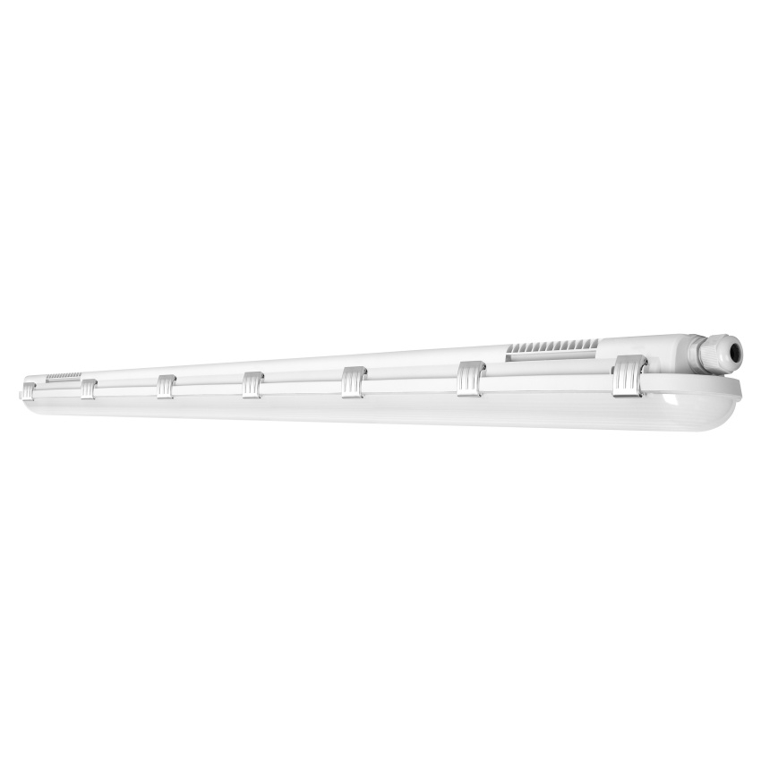Prachotěsná svítidla, klasický tvar. Vlastnosti produktu: Vysoká světelná účinnost: až 139 lm/W. Vyzařovací úhel: 110°. Výhody produktu: Nízké blikání ≤ 10%. Rovnoměrně rozložené světlo. Úspora energie až 60% (ve srovnání se svítidly, která používají zářivky). Snadná instalace, pro zapojení není třeba žádného nářadí. 5letá záruka. Druh použití: Ideální pro průmyslová a skladovací zařízení. Parkoviště a podchody. Garáže. Dílny, montážní linky. Výbava / příslušenství: Včetně svorek z nerezové oceli s bezpečnostními šrouby. Včetně upevňovacího příslušenství (sada pro zavěšení, sada ochrany před odcizením).
