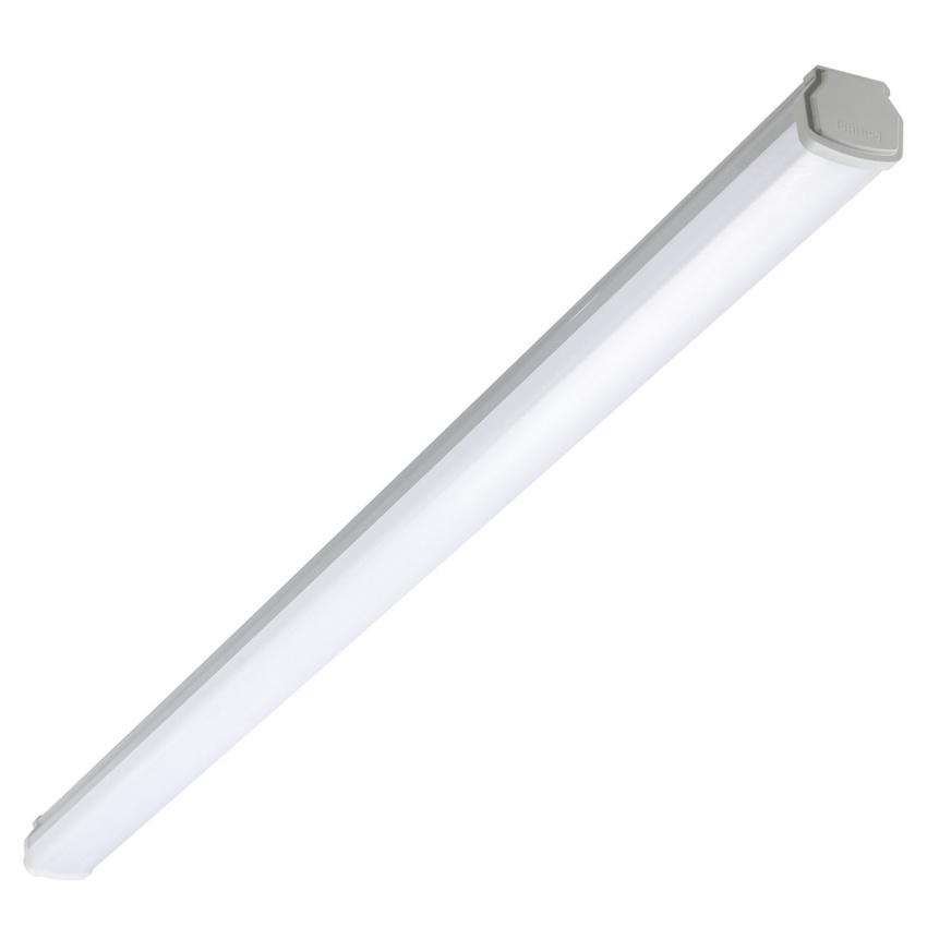 - Prachotěsné stropní přisazené lineární LED svítidlo z funkční řady Philips Ledinaire v délce 150 cm o celkovém příkonu 46 W vyzařuje silné 5600 lm jasné bílé světlo s teplotou chromatičnosti 4000 K, které simuluje polední svit a je tak vhodné k soustředění a práci. Index barevného vnímání s hodnotou CRI > 80 značí velmi dobré vnímání barev. Svit vychází z úsporných vysoce výkonných integrovaných LED diod, které jsou součástí svítidla bez možnosti jejich výměny, což činí svítidlo zcela bezúdržbovým.