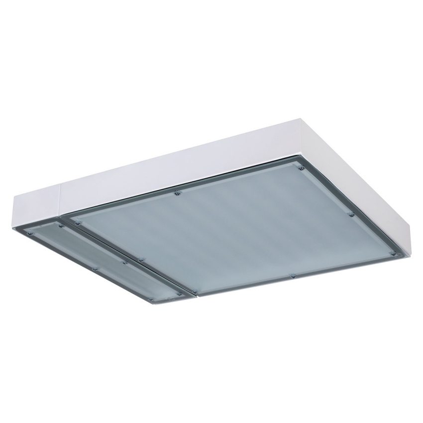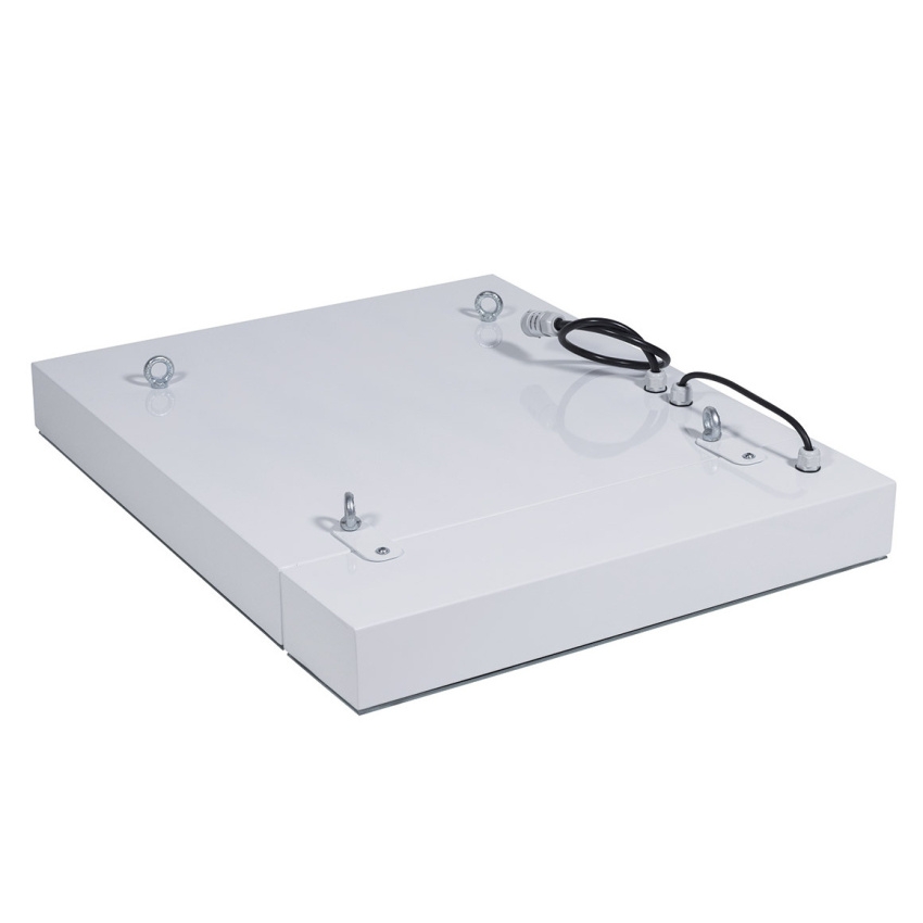 - Kovové průmyslové LED svítidlo určené pro montáž na vysoké stropy, s difuzorem ze satinovaného tepelně tvrzeného bezpečnostního skla.