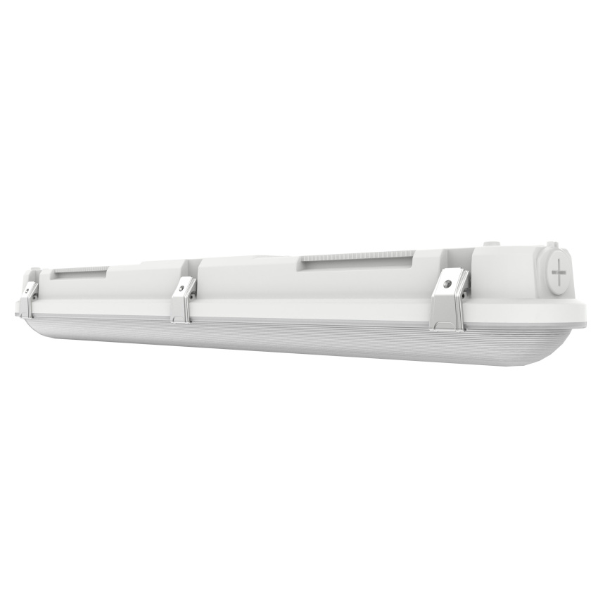 LEDVANCE DP CBO 600 V je odolné lineární svítidlo pro náročné prostředí s nastavitelným výkonem (Multi Lumen) i teplotou chromatičnosti (Multi Color) přímo na měniči. Díky krytí IP66 a nárazové odolnosti IK10 je ideální do garáží, průmyslových a skladových prostor, parkovišť či podchodů. Koncept Plug & Upgrade umožňuje snadnou přestavbu na senzorovou či nouzovou verzi; varianta MS využívá vysokofrekvenční snímač pro automatické spínání. Nízké blikání, vysoká účinnost až 153 lm/W a životnost až 50 000 h (L70/B50 při 25 °C) zajišťují spolehlivý a úsporný provoz, průchozí zapojení a zasouvací svorky zase urychlují instalaci.