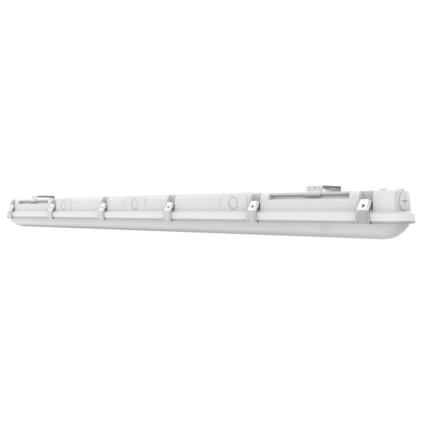 LEDVANCE DP CBO 1200 V 32W MS je odolné lineární svítidlo vhodné do garáží, parkovišť, průmyslových a skladových prostor. Díky Multi Lumen a Multi Color nastavení na měniči lze zvolit výkon 16–32 W i teplotu chromatičnosti 4000 K nebo 6500 K, a tím přesně přizpůsobit světelný tok (až 4800 lm) konkrétnímu prostředí. Krytí IP66 a nárazuvzdornost IK10 zaručují spolehlivý provoz v prašném a vlhkém prostředí, nízké blikání a dlouhá životnost až 50 000 h (L70/B50 při 25 °C) snižují náklady na údržbu. Instalaci urychlují zasouvací svorky bez nástrojů, možnost průchozího zapojení a přibalené montážní prvky.