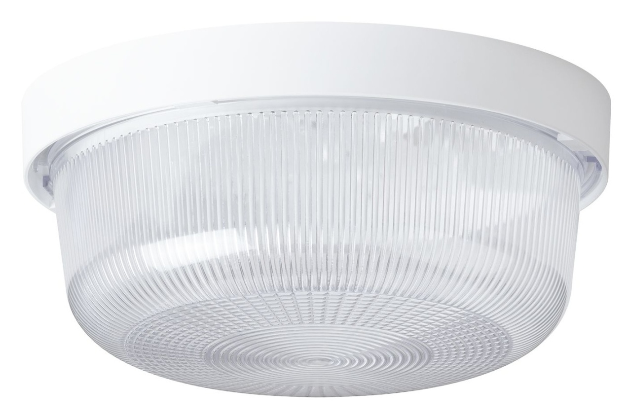 Svítidlo ELEKTRA 3 - svítidlo tvoří montura z polypropylenu a stínítko z polykarbonátu. Montura je z bílého polypropylenu. Stínítko z čirého polykarbonátu. Určeno pro montáž na stěnu nebo na strop. Držení stínítka bajonetové. Použití: garáže ,chodby, haly , venkovní osvětlení - IP53.