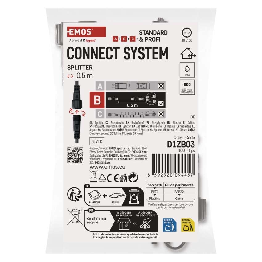 Rozbočovač EMOS D1ZB03 pro spojovací řetězy Standard černý 0,5 m