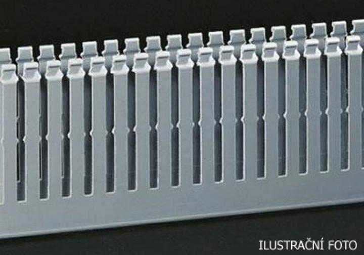 Rozvaděčový kanál s úzkou perforací 100x80 - šedá. Rozvaděčový kanál s úzkou perforací 40x80 - šedá. Ideální pro nižší průřezy vodičů, které se používají zejména v řídících rozváděčích. Přestože se bočnice skládají z užších lamel je kanál díky své masívní konstrukci dna a ideálnímu poměru mezi výškou bočnice a lamely velice pevný a stabilní. Tato vysoká pevnost umožňuje jeho montáž dokonce i na výložníky a konzole. Je vyroben z materiálu s elasticitou vyšší než 3000 Npa, což umožňuje během práce opakované vyhnutí lamely a to i při nízkých teplotách bez toho, aby došlo k jejímu zlomení.