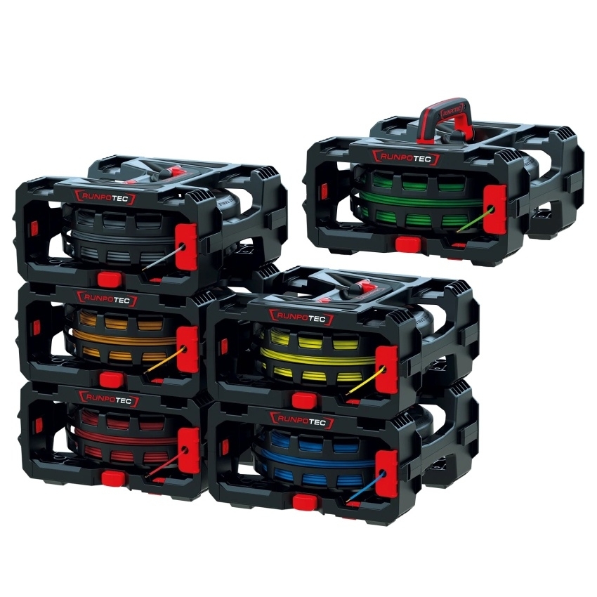 Sada RUNPOTEC 10217 obsahuje šest kabelových boxů CB 260 určených pro odvíjení jednožilových vodičů, drátů a kabelů. Každý box umožňuje uložení, výměnu a odvíjení svazků o průměru až 26 cm. Modulární konstrukce umožňuje boxy stohovat, fixovat a rozpojovat podle potřeby. Součástí dodávky je šest boxů, šest cívek a šest kabelových klipů.