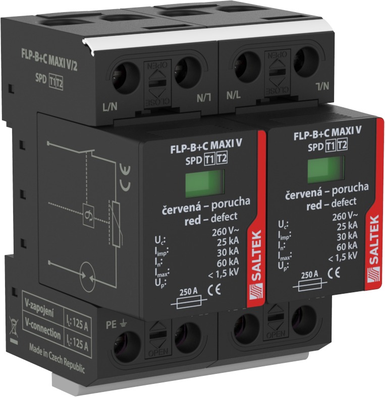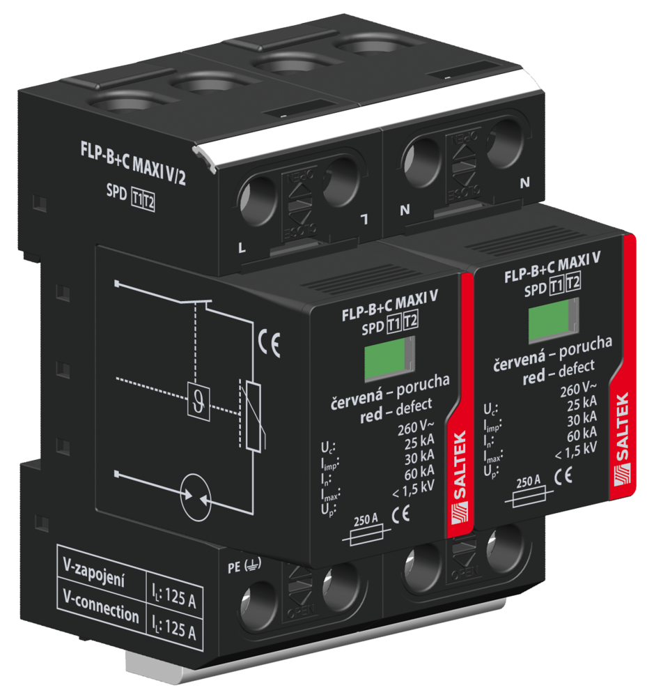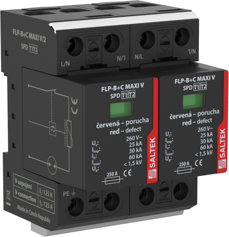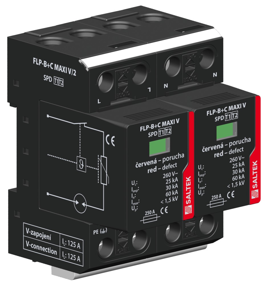 SALTEK SVODIČ FLP-B+C MAXI V/2, TYP1+2, 2X25KA/30KA, 230V, 1PÓL, PRO SÍTĚ TN-S