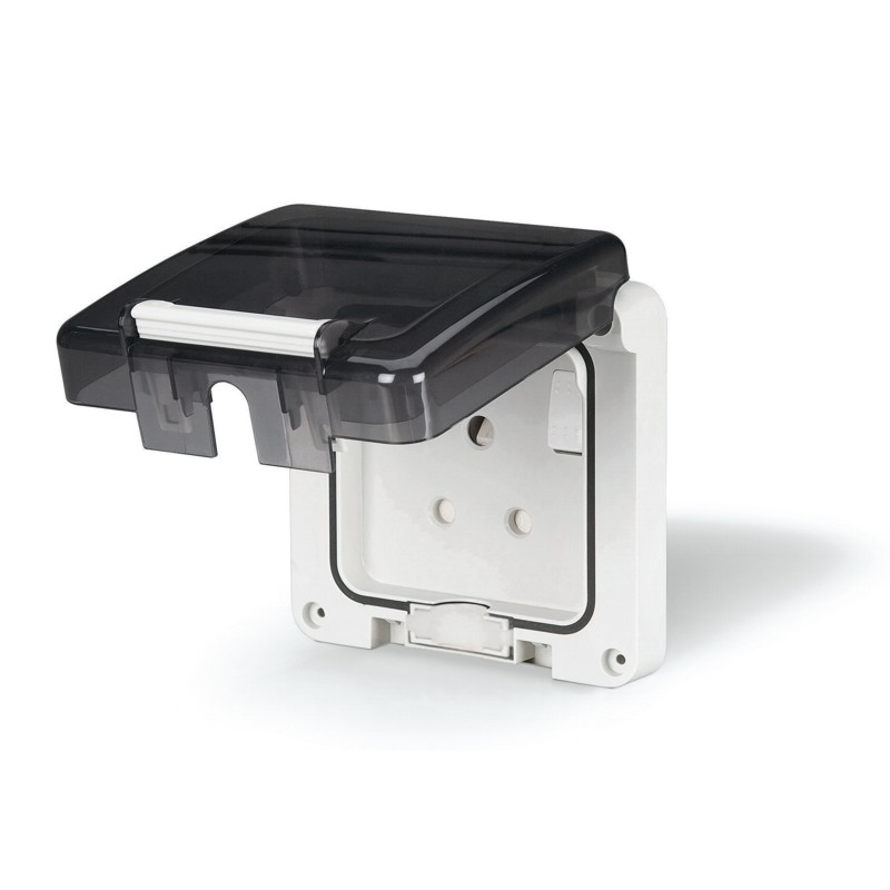 Zásuvka série PROTECTA pro montáž pod omítku. Materiál: technický plast odolný UV záření. Krytí IP66 zajišťuje speciální gelové těsnění i se zasunutou vhodnou vidlicí. Mechanická odolnost: IK07.