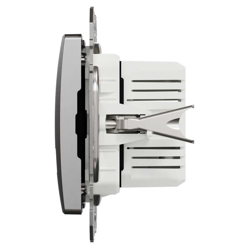 Dvojitá nabíječka USB A+C Schneider Electric Sedna Design Elements v provedení leštěný hliník umožňuje rychlé a bezpečné nabíjení elektronických zařízení.