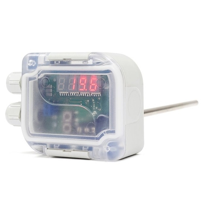 Tyto odporové snímače teploty se stonkem a displejem jsou určeny pro kontaktní měření teploty kapalných nebo plynných látek. Snímače jsou určeny pro měření teploty v klimatizačních kanálech a potrubích. Čidlo teploty je umístěno v kovovém stonku délky 70 až 420 mm. Plastová hlavice snímače teploty s displejem je opatřena kabelovou průchodkou nebo konektorem, měřená teplota je indikovaná na 4místném displeji umístěným pod průhledným víčkem hlavice. Snímače teploty s displejem je možné použít pro všechny řídidí systémy, které jsou kompatibilní s výstupními signály uvedených v tabulce technických parametrů. Maximální teplotní rozsah pro nastavení proudové smyčky snímačů teploty s displejem je -50 až 150 °C. V tomto rozsahu mohou být naprogramovány požadované pracovní teplotní rozsahy, přičemž minimální rozdíl mezi dolní a horní hranicí teplotního rozsahu je 10 °C. Maximální teplota v okolí hlavice snímače teploty s displejem je -30 až 70 °C a nesmí být ani krátkodobě překročena. Snímače teploty s displejem vyhovují stupni ochrany IP 65 podle ČSN EN 60529, v platném znění. Snadná montáž snímačů teploty s displejem je zajištěna díky jedinečnému designu "S hlavice" společnosti SENSIT s.r.o. Snímače jsou určeny pro provoz v chemicky neagresivním prostředí, způsob použití musí být volen s ohledem na teplotní odolnost hlavice aa kovových pouzder.