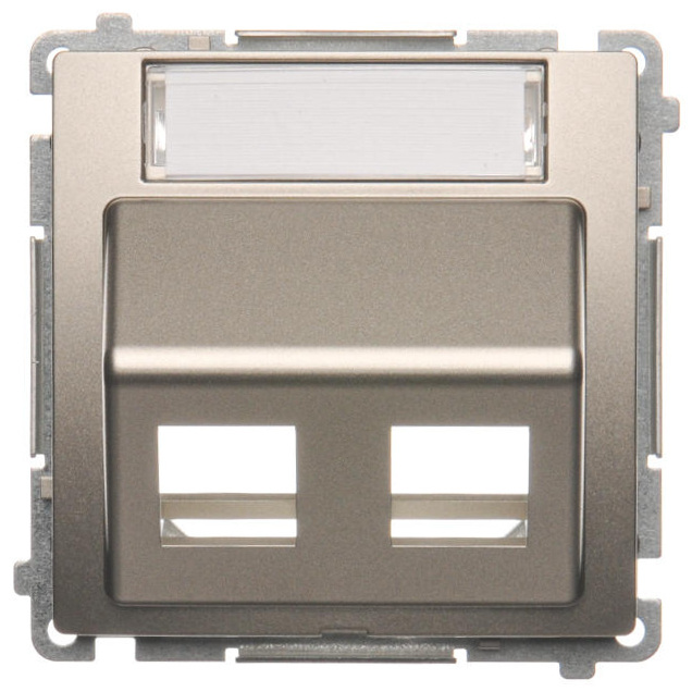 Kryt zásuvky komunikační dvojnásobné (pro prvky Keystone), šikmé s popisovým polem, Satén