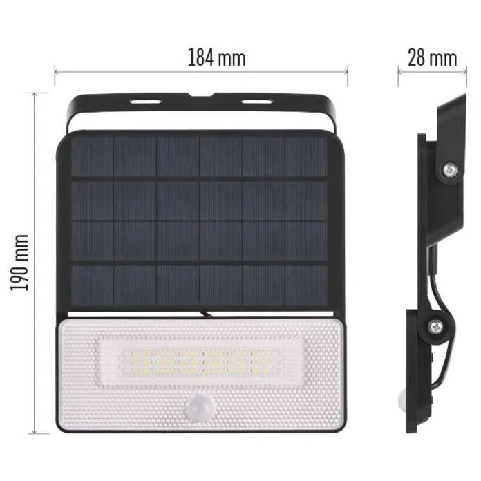 Solární LED reflektor EMOS SOLO s pohybovým čidlem 1600lm 4000K IP54 černý ZG122S