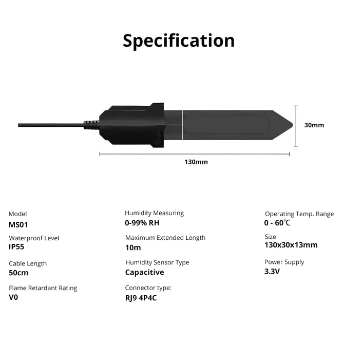 SONOFF MS01 CHYTRÝ SENZOR VLHKOSTI PŮDY S ADAPTÉREM RJ9