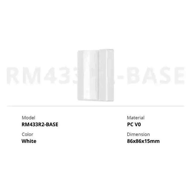SONOFF RM433R2 Base je držák na zeď pro dálkový ovladač SONOFF RM433R2, který umožňuje bezpečné a přehledné uložení ovladače s možností montáže na stěnu nebo použití na stole.
