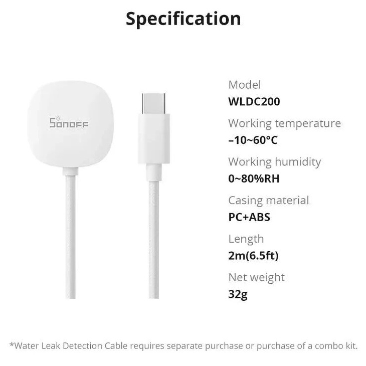 SONOFF WLDC200 DETEKČNÍ KABEL PRO SENZOR ÚNIKU VODY SNZB-05P