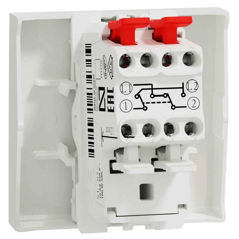 Switch, New Unica, intermediate, 10AX, 2 modules, screwless terminals, antibacterial, IP4X, white