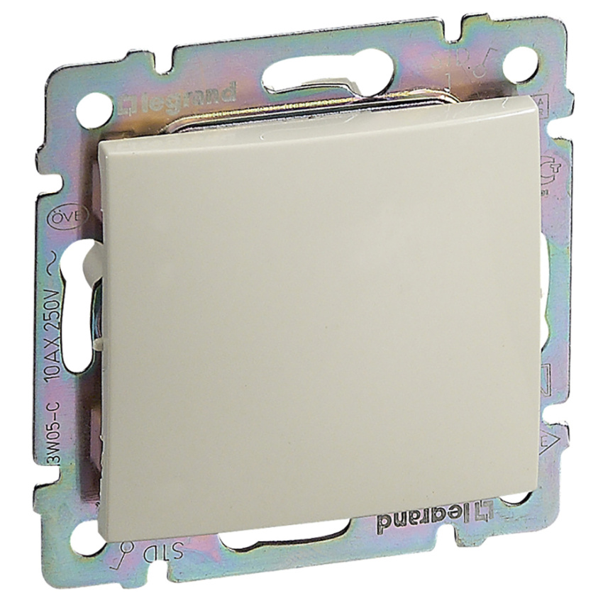 Spínač č.7; strojek + kryt; Mechanismy s kovovou montážní deskou. Montáž do přístrojových krabic pomocí šroubů nebo příchytek. Dodávané bez rámečku.