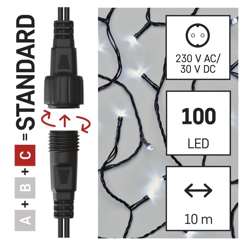 EMOS Standard LED spojovací vánoční řetěz, 10 m, venkovní i vnitřní, studená bílá