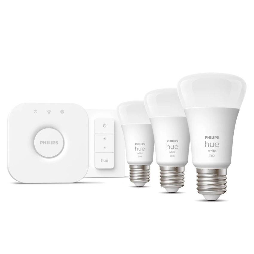 - S touto základní sadou, která obsahuje tři chytré žárovky s jemným bílým světlem, Hue Bridge a vypínač, můžete začít budovat inteligentní systém osvětlení.