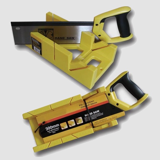 Pila pro řezání čepů, lišt apod. s oboustranně broušenými zuby. Součástí plastový kosořez.