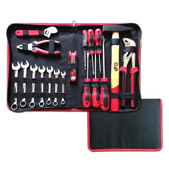 - Sada 18 dílů nářadí v pouzdru. Nářadí je pevně upnuto uvnitř organizeru, což zabraňuje smíchání a vysypání nářadí při převozu. Nezbytný pomocník každého kutila a montéra, ideální pro převoz v autě.