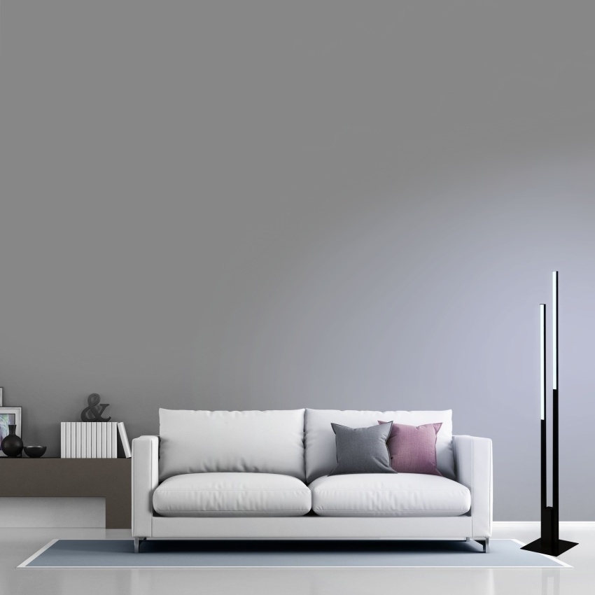 Svítidlo EGLO FRAIOLI-Z 900082 je moderní stojací LED lampa v elegantním černém provedení. Nabízí výkon 2x17 W a světelný tok 4800 lm, takže poskytuje dostatek světla pro obytné i pracovní prostory. Díky funkci CCT lze nastavit teplotu bílé barvy v rozsahu 2700–6500 K, zatímco RGB režim umožňuje výběr libovolné barvy pro vytvoření jedinečné atmosféry. Lampa je stmívatelná a podporuje chytré ovládání přes mobilní aplikaci EGLO Connect i pomocí dálkového ovladače. Kombinace hliníkového těla a bílého difuzoru podtrhuje moderní vzhled svítidla, které je určeno pro interiérové použití.
