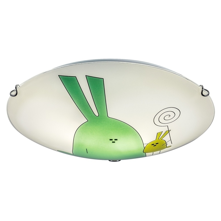 Flappy je hravé dětské svítidlo, které promění pokoj vašich nejmenších v útulné a radostné místo. Bílé kovové tělo doplňuje kulaté skleněné stínítko s barevným motivem, který působí přívětivě a podporuje dětskou představivost. Lze jej použít jako stropní nebo nástěnné svítidlo, takže se snadno přizpůsobí rozložení místnosti. Svítidlo je určeno pro dvě žárovky s paticí E27 o maximálním příkonu 60 W (zdroje nejsou součástí balení). Použitím teplého bílého světla docílíte klidné atmosféry, která pomáhá dětem relaxovat i usínat. Průměr svítidla je 400 mm.