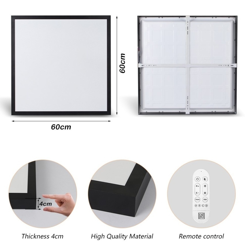 - Elegantní design – černý hliníkový rám, rozměry 60 × 60 × 3,8 cm