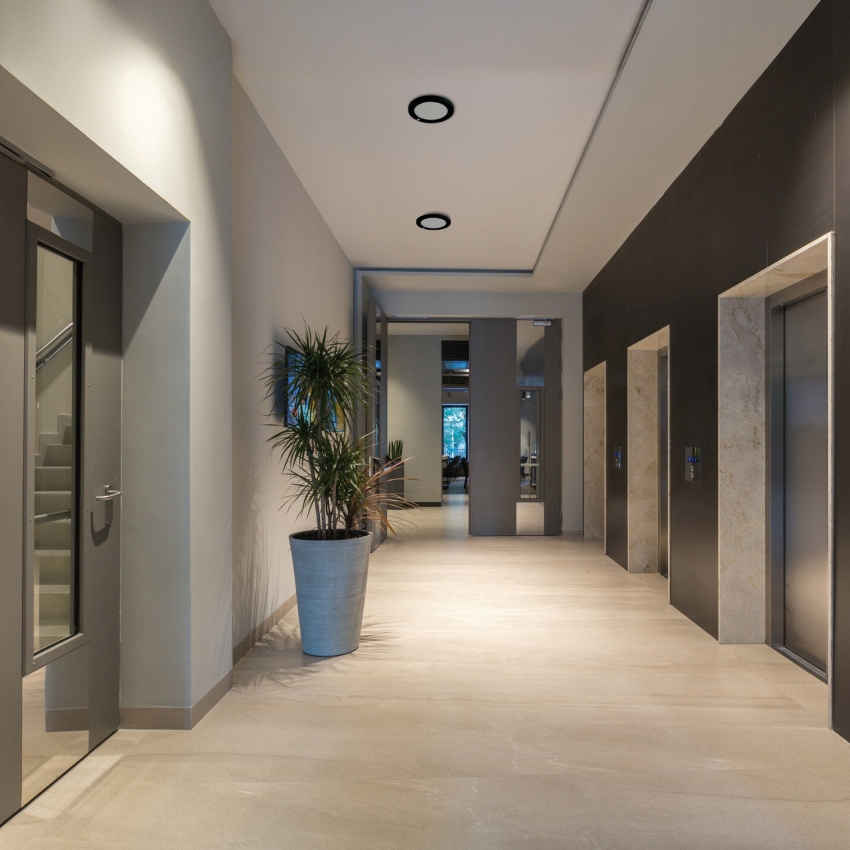 Kanlux ERGA PIR je všestranné stropní svítidlo, které lze namontovat na strop (vestavné nebo přisazené) a na stěnu. Je dostupné v klasické bílé a černé barvě, perfektně se hodí do různých interiérů. Je vybaveno snímačem pohybu PIR a technologií CCT, která umožňuje zvolit teplotu barvy světla. Nastavení čidla a barvy světla jsou skryty pod odnímatelným rámečkem, což zaručuje estetiku a snadné použití.