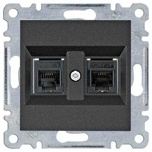 Zásuvka telefonní 2xRJ11 cat.3, černá mat