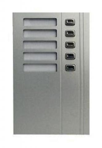 Modul tlačítek obsahuje 5 účastnických tlačítek se jmenovkami pro vyzvonění příslušných domácích telefonů.