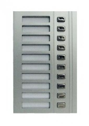 Modul tlačítek obsahuje 10 účastnických tlačítek se jmenovkami pro vyzvonění příslušných domácích telefonů.