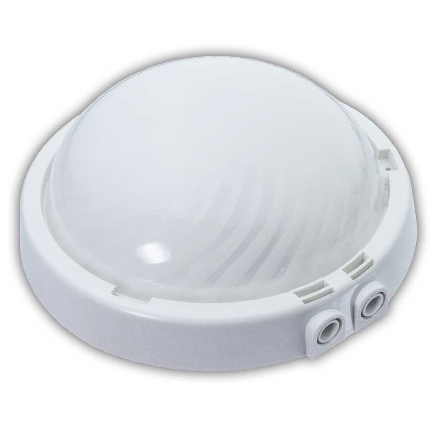 - Svítidlo kruhového tvaru vyrobené z bílého plastu s polykarbonátovým čirým krytem a osazené keramickou objímkou E27.
