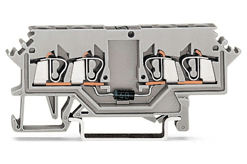 Svorka pro moduly; 4 vodiče; S diodou 1N4007; Anoda vlevo; Na DIN lištu 35 × 15 a 35 × 7,5; 2,5 mm²; CAGE CLAMP®; 2,50 mm²; Šedá