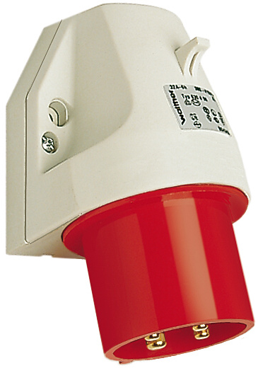 Nástěnná přívodka, upevnění - zevně, napětí - 400V červená, proud - 16A, 4 pólů, provedení - na omítku, hodinový úhel - 6h, způsob připojení - šroubové svorky.