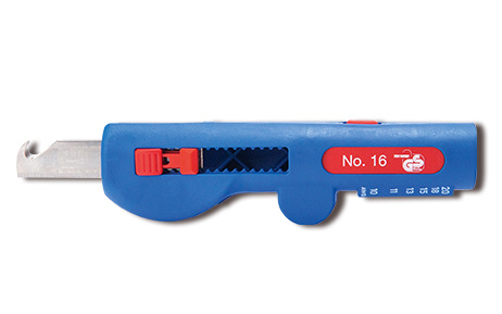 Kabelový nůž Quadro No. 16 je určený pro všechny běžné kruhové kabely. Hloubka řezu integrovaných ostří (vyrobených z vysoce kvalitní oceli) je optimalizována pro práci na vodičích NYM (od 3 x 1,5 mm2 až 5 x 2,5 mm2).