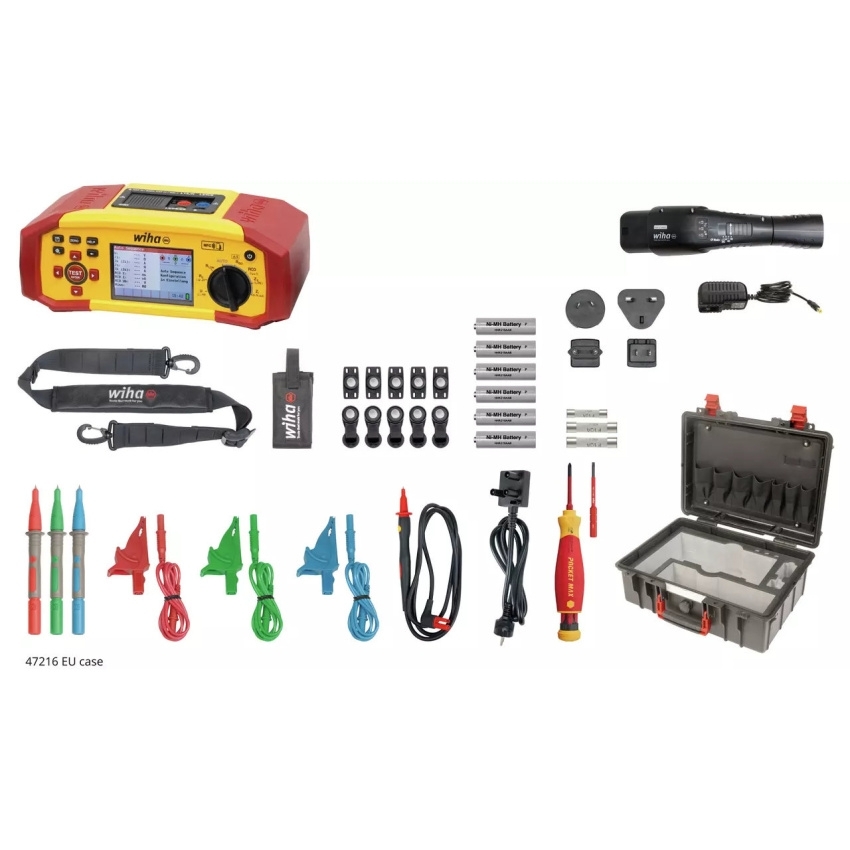 - Součásti sady: Měřicí přístroj MFT one, 9dílná sada příslušenství ke kabelům pro revizní přístroje (47225), nabíječka revizního přístroje (47228), měřicí adaptér s vidlicí Schuko pro revizní přístroje s funkcí měření uzemnění (47226), měřicí hrot s testovacím tlačítkem včetně krokosvorky, měřicí adaptér nástěnného nabíjecího zařízení typ 2 pro instalační tester (47210), sada magnetických držáků 5dílná pro revizní přístroje instalací (47240), sada náhradních pojistek pro revizní přístroje (47233), šroubovák se zásobníkem nástavců PocketMax® electric Smíšené, s 4 nástavci slimBit (45296), nástavec slimBit electric TORX® T10 x 75 mm (35507), ramenní / nosný popruh, pouzdro na mobil, pěna pro kufr MFT L, prázdný kufr