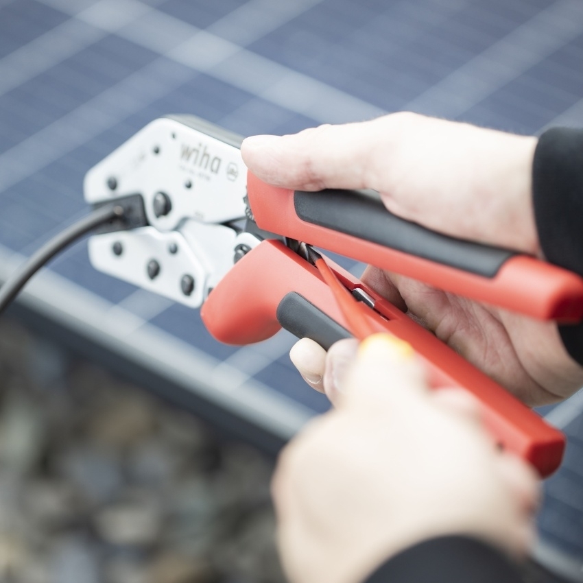 Bezporuchový provoz fotovoltaických zařízení výraznou mírou závisí na kvalitě elektrických spojů mezi solárními moduly vzájemně, a mezi nimi a střídačem. Zde je rozhodující přesné a spolehlivé krimpovací spojení. Fotovoltaickým krimpovacím nástrojem pro solární konektory MC4 firmy Wiha je možné jednoduše krimpovat solární kabely o průměru 2,5 / 4 / 6 mm? (14 |12 | 10 AWG). Při krimpování se lisovací tlak nastavuje automaticky podle různých průřezů, čímž je zajištěno, že bude krimpování provedeno správně a kompletně. Díky funkci nouzového odjištění lze proces krimpování kdykoli ručně přerušit. Krimpovací kleště nabízejí kromě toho díky našroubovaným krimpovacím vložkám také optimální náhled na proces krimpování, a to jak pro praváky, tak i pro leváky. Ergonomické a neklouzavé rukojeti s měkčeným povrchem a ochranou proti sklouznutí jsou navíc zárukou mimořádně komfortní práce. FV krimpovací nástroj s kloubovou mechanikou umožňuje vysoký přenos síly, a tím i jednodušší provádění prací.