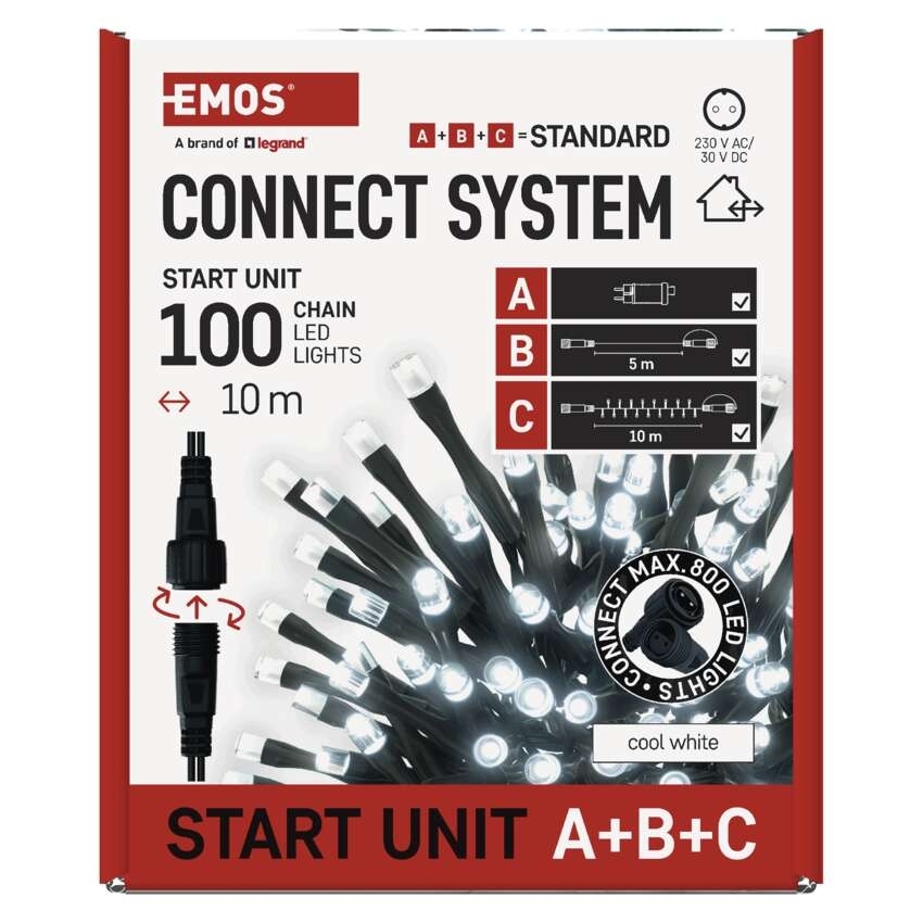 Základní LED vánoční sada pro spojovací řetězy Standard EMOS D1AC01 100LED 10 m studená bílá s časovačem
