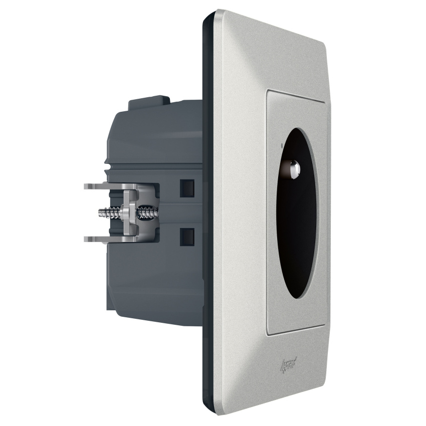 Valena Life with Netatmo spínaná zásuvka 230V/16A s měřením spotřeby el. energie, lze ji ovládat bezdrátovými spínači osvětlení, mobilem nebo hlasem. Přístroj lze přidat do scénářů nebo časových programů - barva Hliník, dodávána s rámečkem v barvě Hliník.