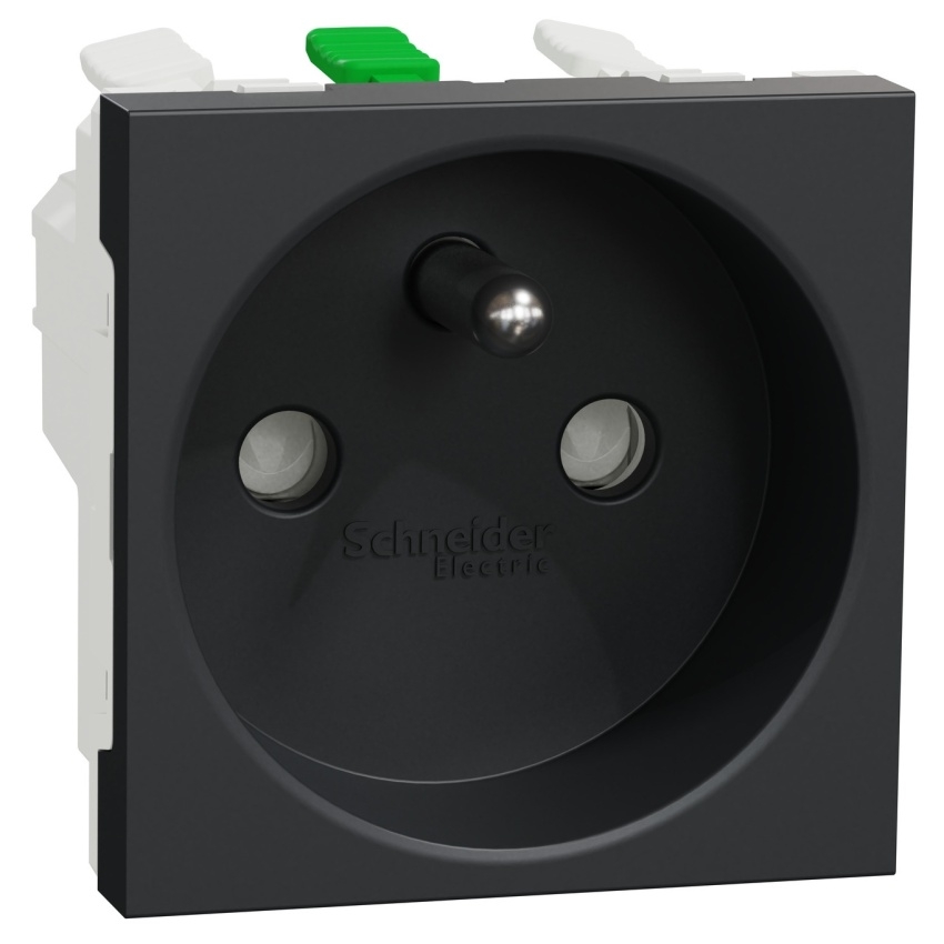 Zásuvka bezšroubová s clonkami Schneider Unica 250V/16A 2P+E antracit bal-10ks+voucher kit_NU305954Ex10