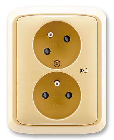 Zásuvka dvojnásobná s clonkami, s natočenou dutinou, s ochranou před přepětím ABB Tango 5583A-C02357 D béžová