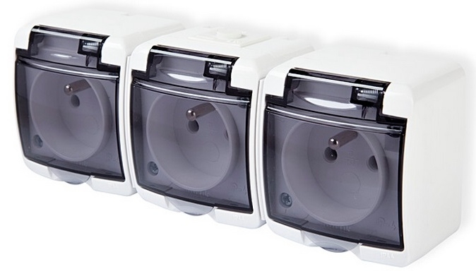 ZÁSUVKA NA POVRCH GHE-3D 3XBILA S KOUR.VICKEM 230V