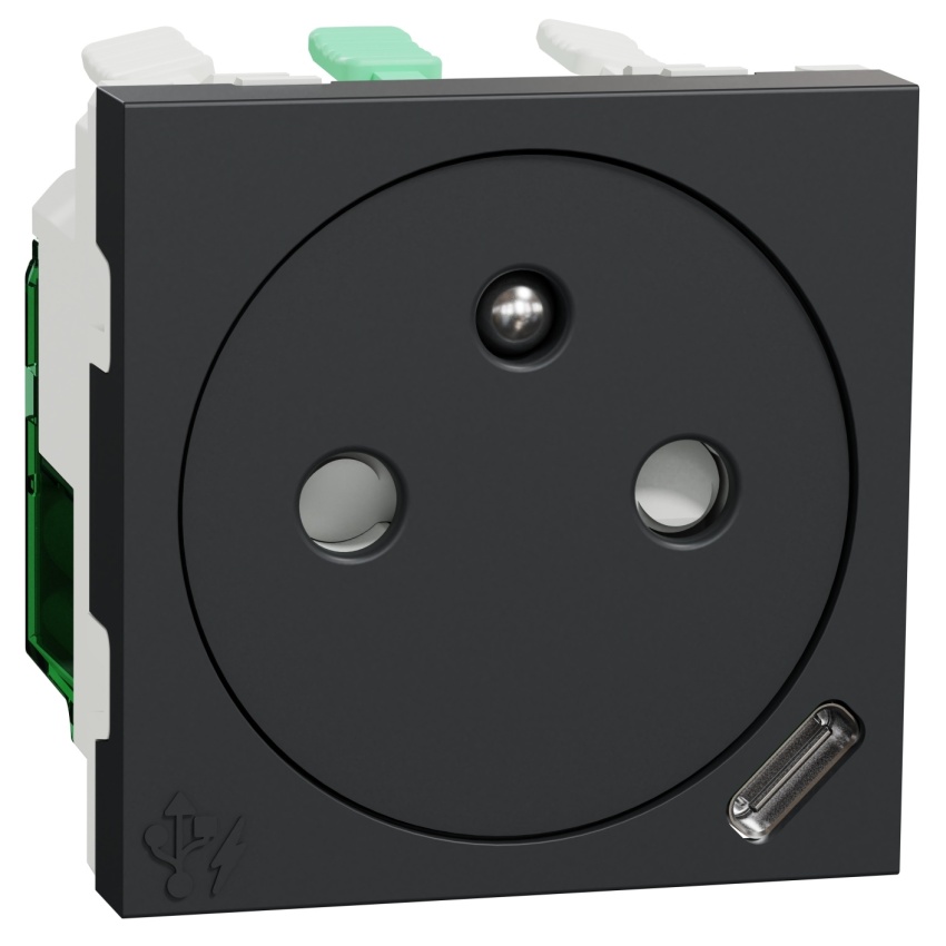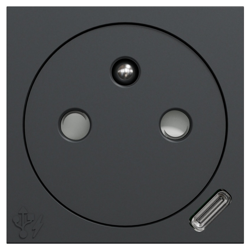 Socket outlet and USB C, New Unica, Pin earth, 10.5 W, 5V, 2 modules, anthracite